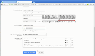 Perlu diketahui ketika sobat melakukan pendaftaran pada google adsense sobat lakukan secara normal. Baik itu alamat no tlp dll kecuali satu zona waktu usahakan pilih los angeles